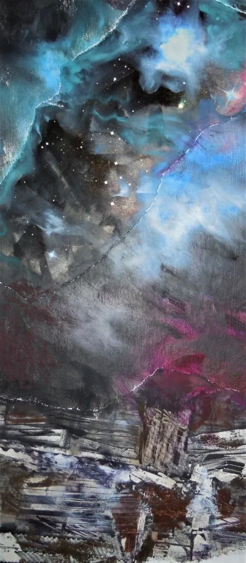 Discovering the immediacy and expansiveness of acrylics led me to begin to paint on a larger scale. In the Sky Series, I explore distance and light within landscapes that contain elements of water, earth and sky, but not always in the expected order.